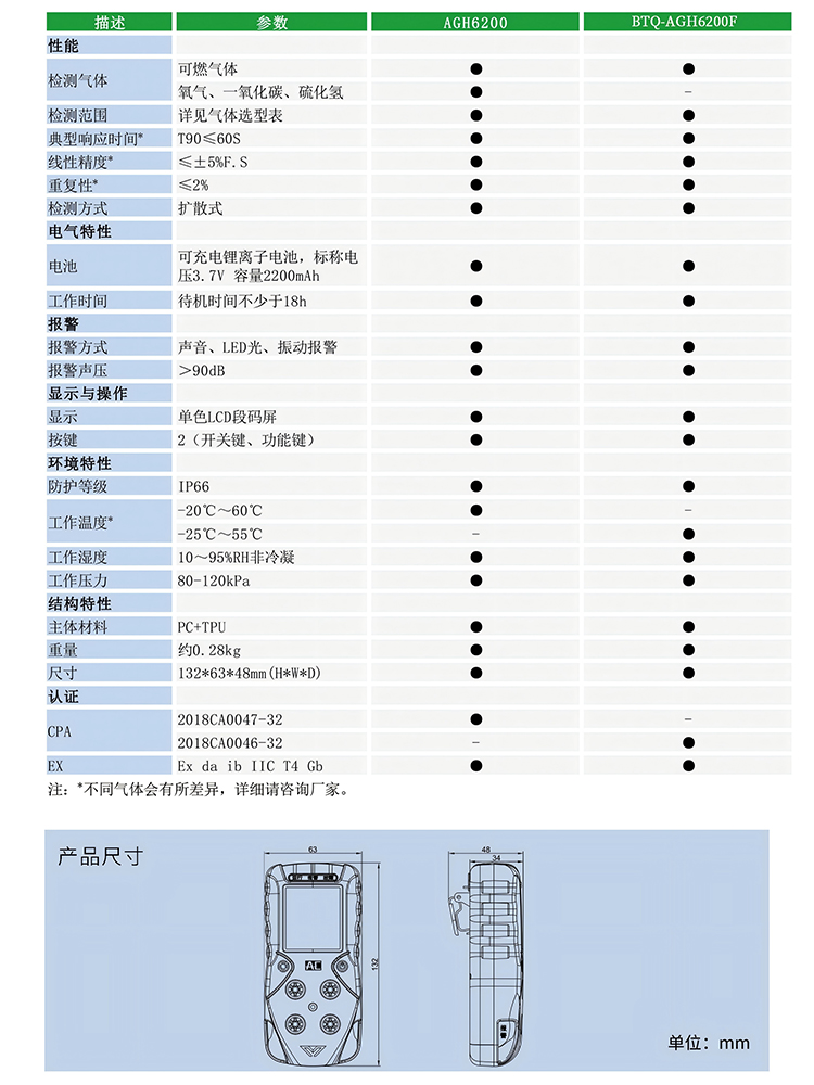 注:不同氣體產(chǎn)品有所不同,詳情請(qǐng)咨詢廠家。